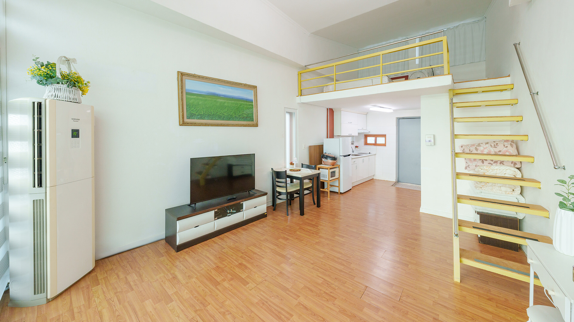 - 집기품목 : 욕실용품, 남녀공용, TV, 금연, 냉장고, 에어컨, 전기밥솥, 취사시설/도구, 샴푸, 바디워시, 드라이기, 린스, 타월, 화장대, 식탁, 인덕션, 전자레인지, 커피포트, 치약, 노래방